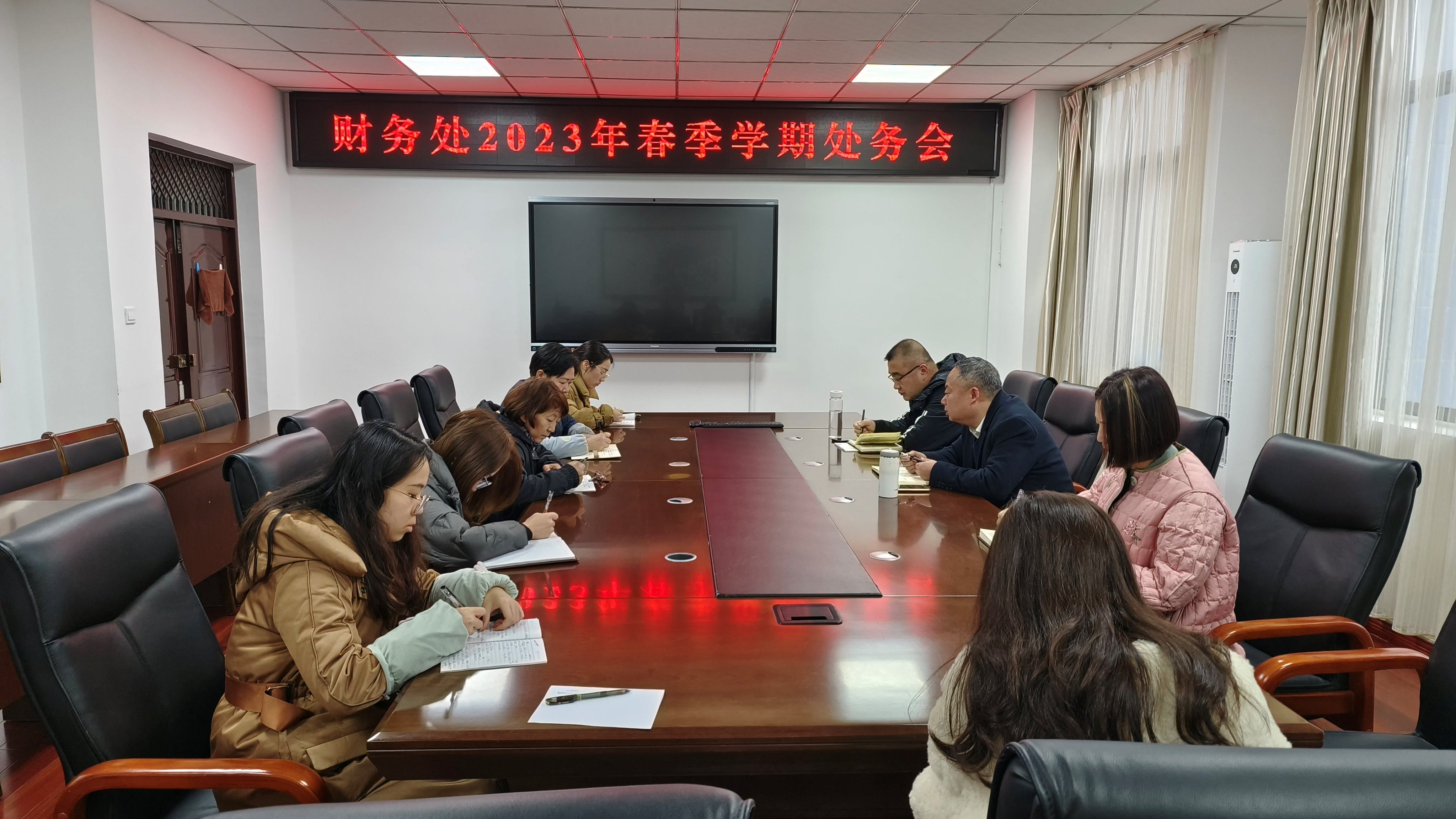 2月21日下午,计财处在南校区综合楼315会议室召开新学期工作例会,计财处分管校领导商碧辉及计财处全体人员参会,会议由计财处处长张黎主持。